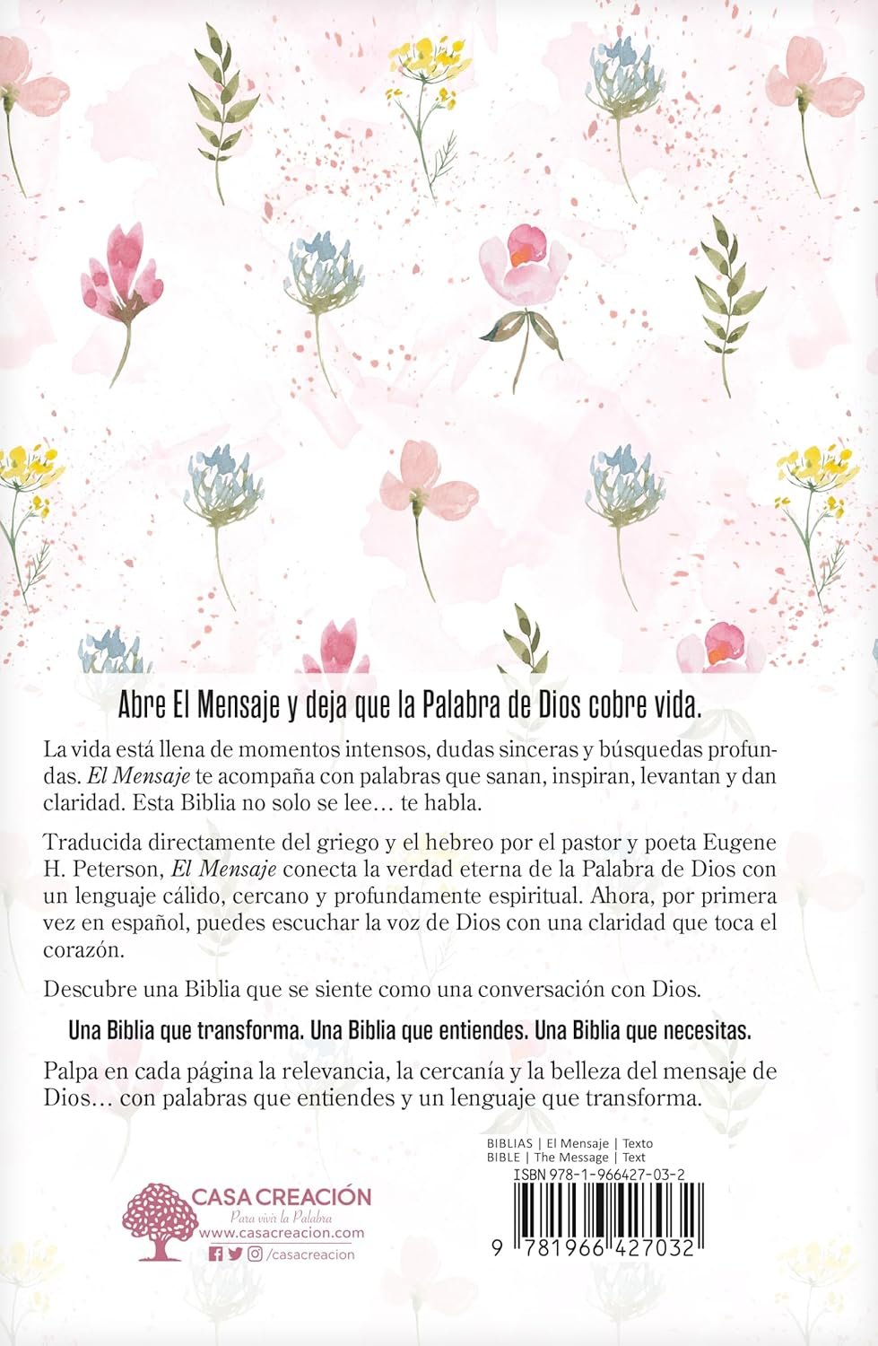 El Mensaje es una experiencia. Su lenguaje cálido, actual y natural te conecta con las Escrituras de una forma personal y transformadora. Cada lectura se siente como una conversación íntima con Dios —como si te hablara directamente, ahí donde estás— ayudándote a vivir tu fe con mayor claridad y propósito.