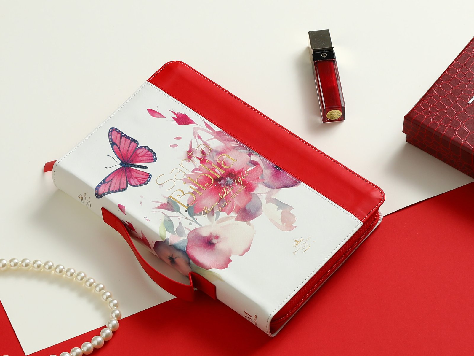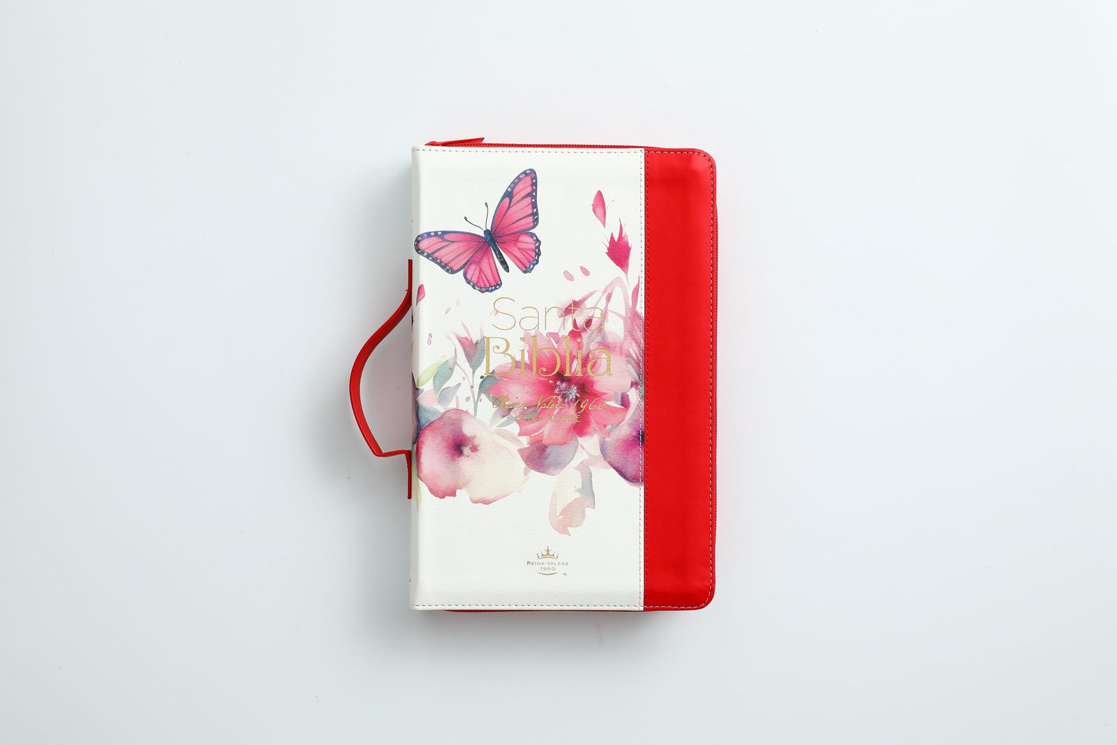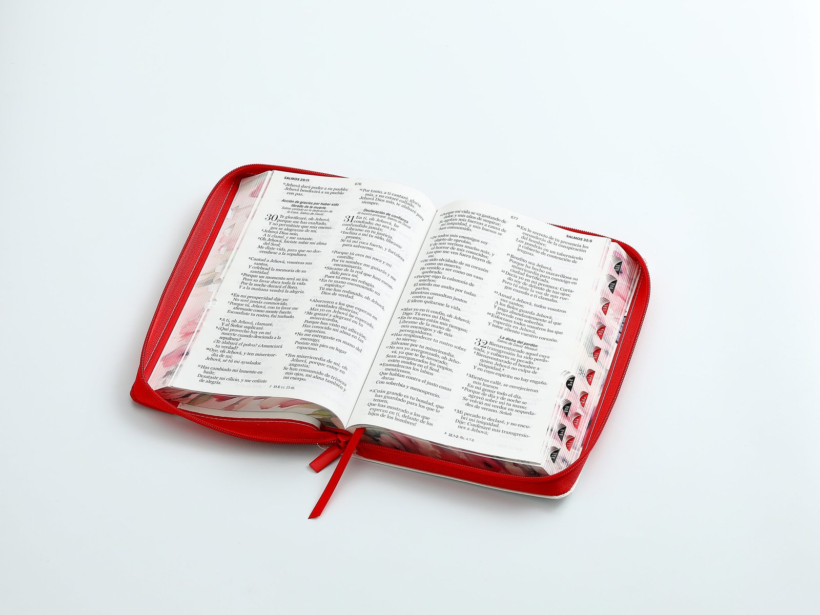 Biblia RVR Letra Grande 12 pts Rosas Rojo Indice Cierre Manija