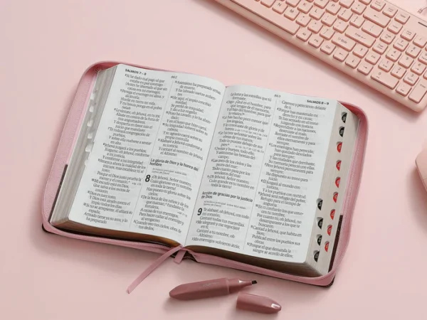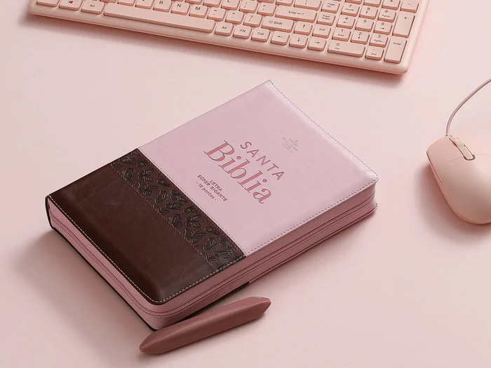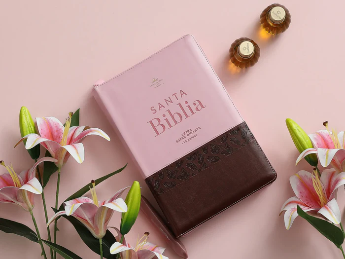 Biblia Rvr60 Letra Gigante 19 puntos Café/Rosa con Mariposas