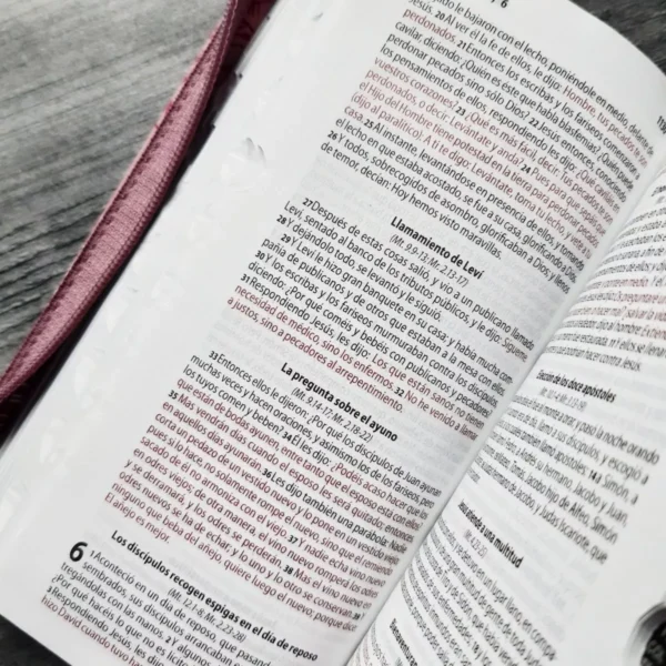 Descubre la Biblia tamaño tipo chequera, una edición práctica, elegante y perfecta para llevar contigo a cualquier lugar. Su diseño moderno a una sola columna hace que la lectura sea mucho más fluida y cómoda, ideal para quienes buscan una Biblia diferente a las tradicionales.